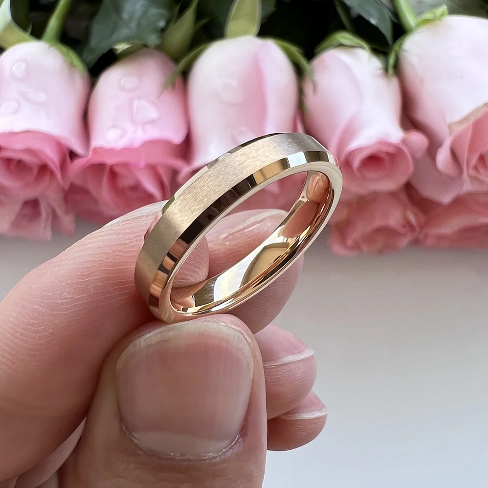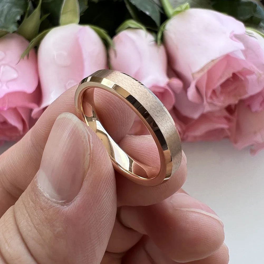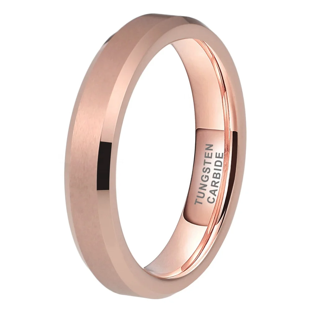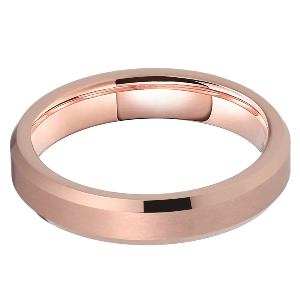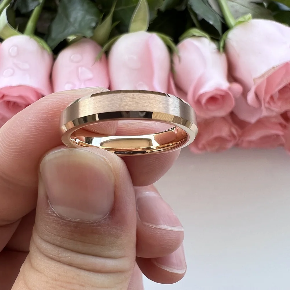 Coolstyle Jewelry 4mm Wholesale Beveled Matte Finish Fashion Engagement Wedding Band Rose Gold Tungsten Ring for Men Women